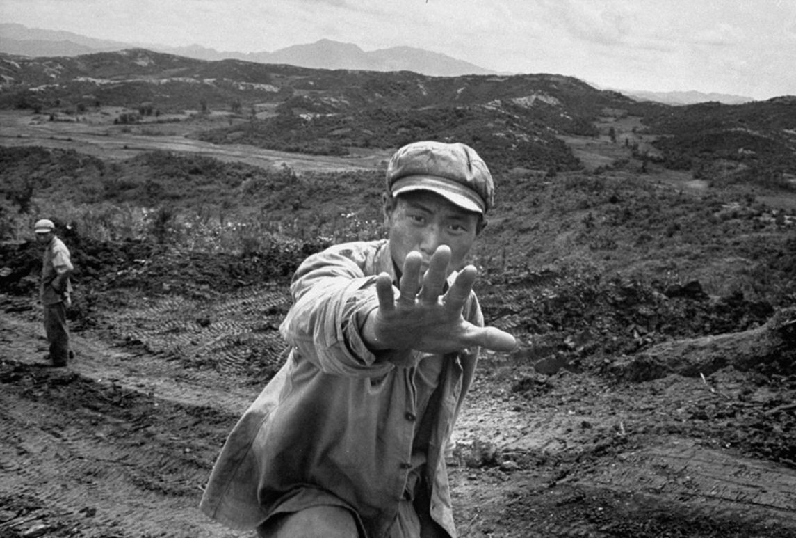 Soldado chino se niega a ser fotografiado mientras busca cadáveres junto a un destacamento de sepultura tras el alto el fuego de la Guerra de Corea, 1953. Foto: Michael Rougier. Colección de LIFE.