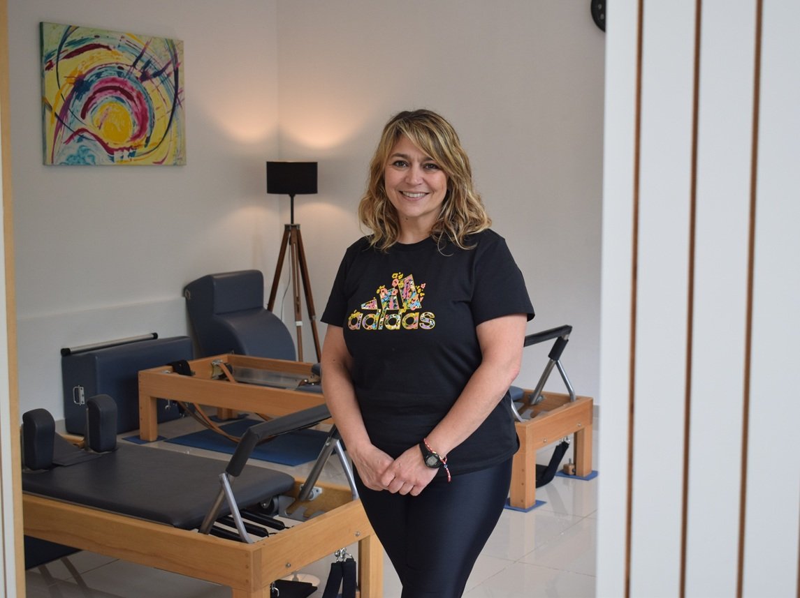“Di clases en algunos lugares y cuando quedé embarazada de mi primer hijo, abrí mi primer Estudio. Empecé en un local en el año 2007. Estuve nueve años en ese lugar hasta que nos mudamos por acá cerca, y ahí pude armar un estudio un poco más grande. Cuando justo estaba por ampliar vino la pandemia; así que me tuve que achicar; vendí todo, pues yo ya había encargado equipos clásicos. Estaba terminando mi formación con Romana´s Pilates. Estuve trabajando sola desde que se liberó la pandemia hasta ahora.  Recién el año pasado se incorporó una profesora a trabajar, más sobre el fin de año se incorporó otro profesor y ahora somos 6 instructores dando clase”.
